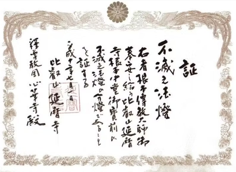 この法灯は、約1,200年前、伝教大師最澄が比叡山に点灯した灯火を起源とし、