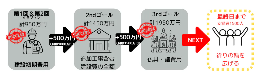 このたび、本プロジェクトは皆さまの温かいご支援により、第3ゴールである 建設費用+仏具費用 1,500万円 を無事に達成することができました。