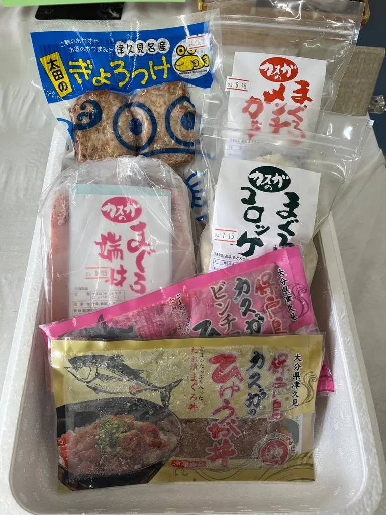 御礼の品としましては、津久見の特産品(まぐろの柵を中心とした特産品セット・扇子レプリカなど)を各種ご用意しておりますので、お好きなものを選んでいただければと思います。津久見市にお住まいの方にも応募いただくことが可能です。ご協力のほど、ぜひよろしくお願いいたします。