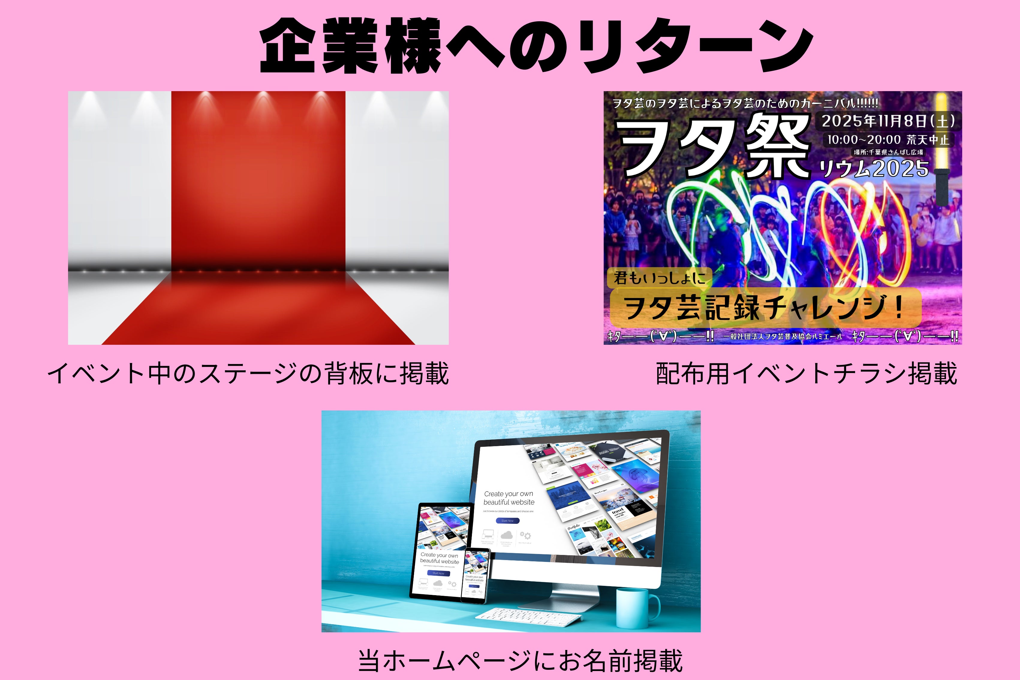 ③当イベントや当ホームページ、当日配布するパンフレットでのご紹介やお名前の掲載・企業様のPRなど