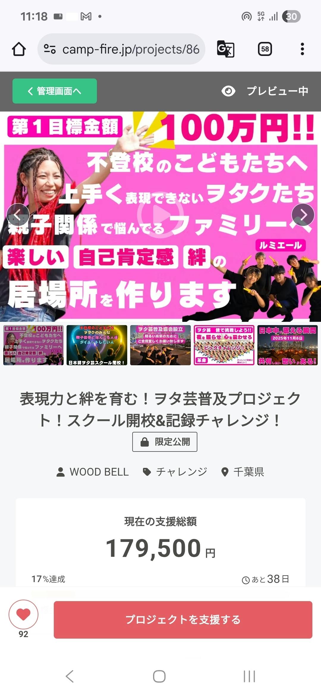 クラウドファンディング開始から1週間で 達成率18% に到達しました!