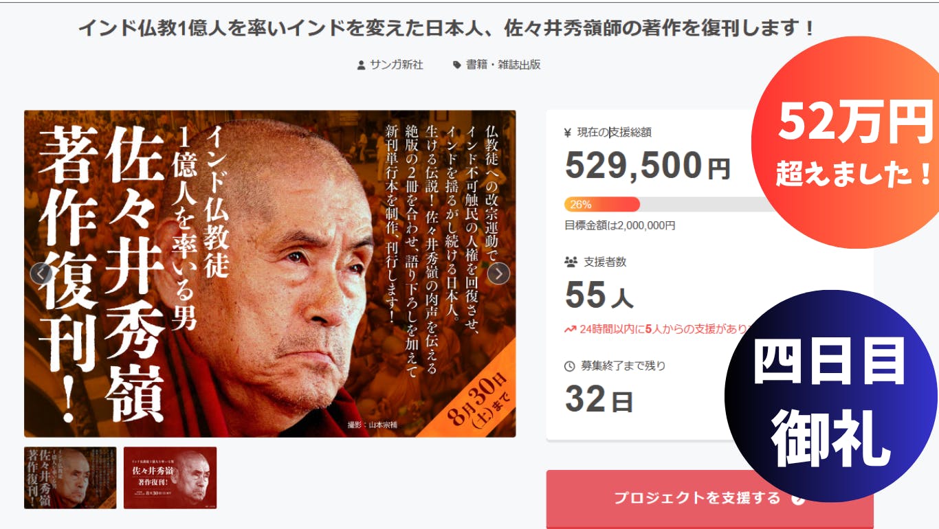 ★インド仏教1億人を率いインドを変えた日本人、佐々井秀嶺師の著作を復刊します!