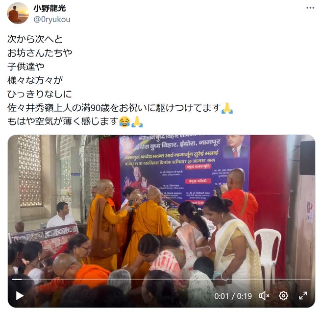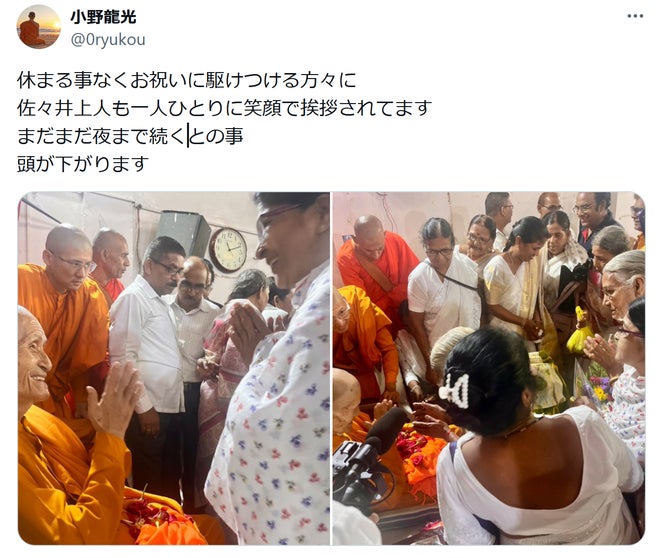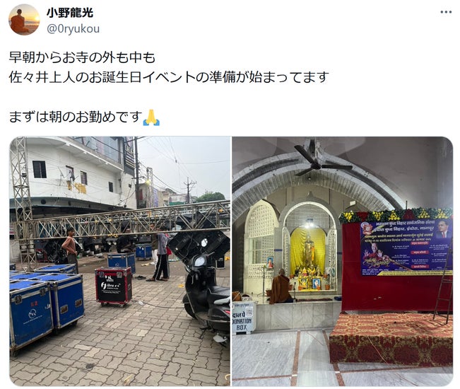 佐々井上人のお弟子さんの小野龍光様がX(旧ツイッター)で現地の様子を投稿しておられますので、その様子をお伝えします。