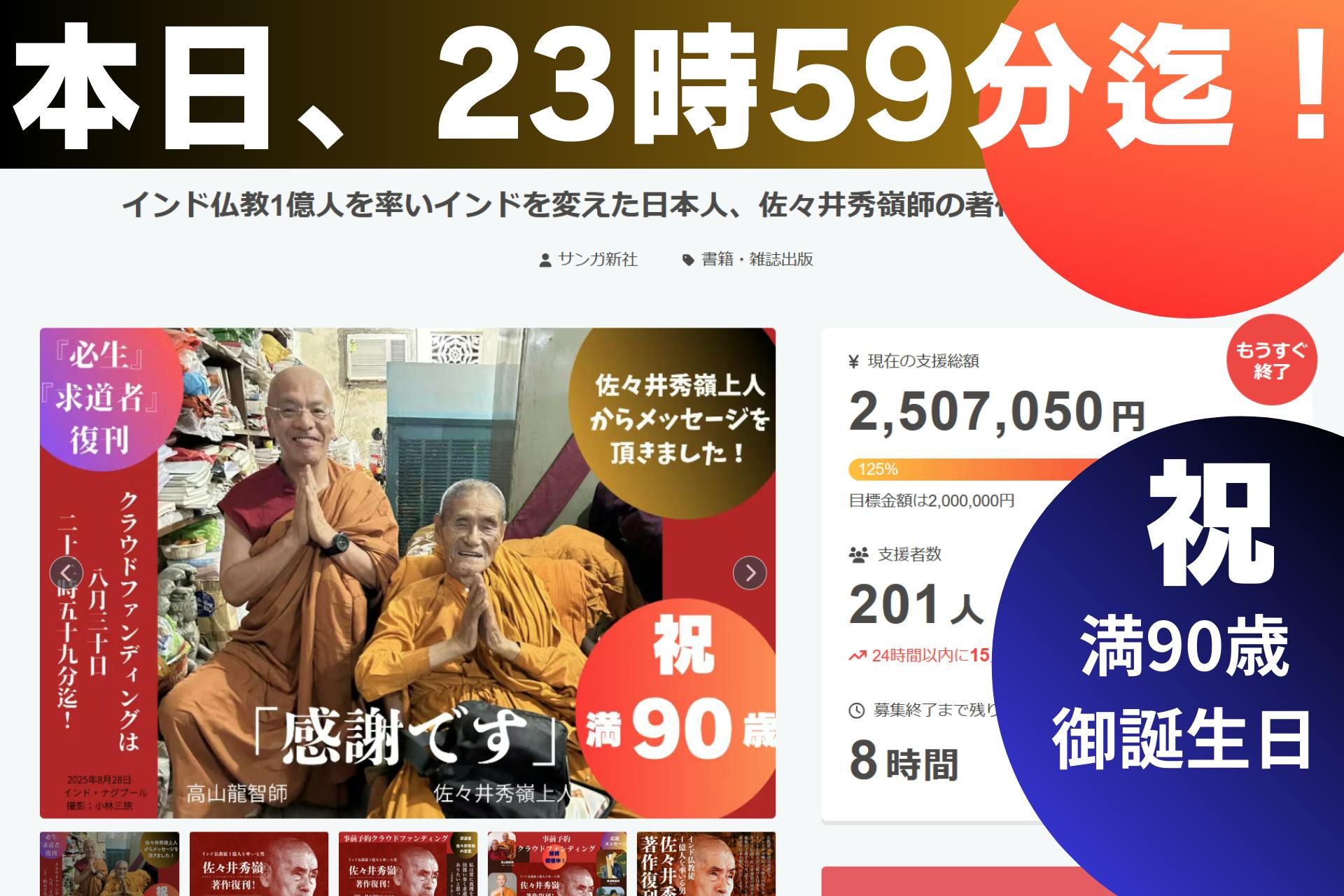 本日、クラウドファンディング最終日! そして、佐々井秀嶺上人の満90歳のお誕生日!