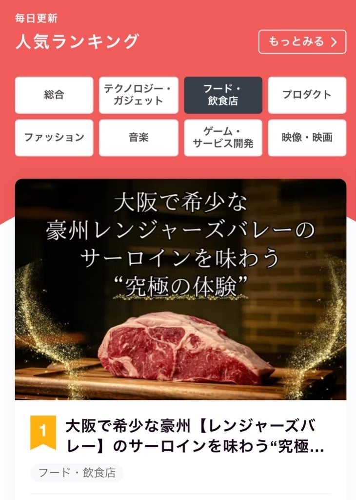 こんにちは!Akamiです!なんと昨日投稿したプロジェクトが「フード・飲食店」部門でランキング1位に輝きました!!普段はなかなか食べられない最高級のステーキコースを”キャンプファイヤー限定”で破格の値段でご提供させていただきます。ぜひご支援のほどよろしくお願いいたします。
