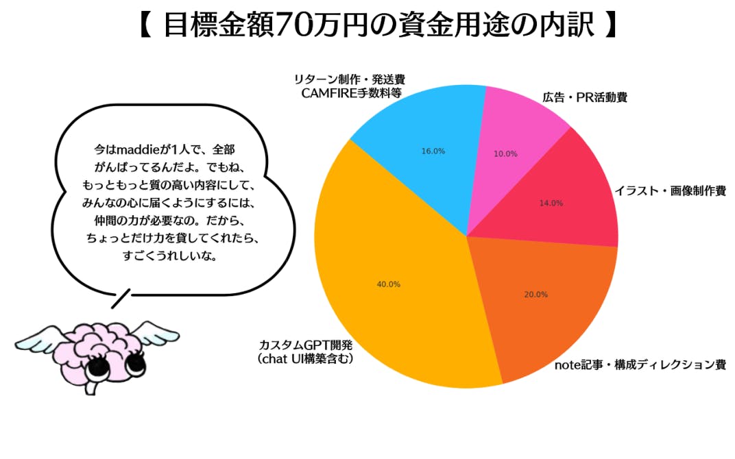 • エンジニアへの業務委託費・リターン制作費・note記事ディレクション費・画像制作費・CAMPFIRE手数料等