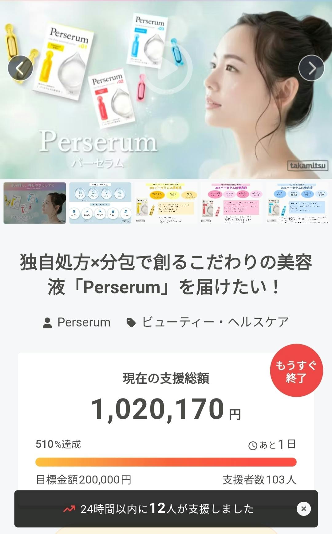 「Perserumプロジェクト」本日10/26(日)で終了となります!これまで多くのご支援をいただきまして大変感謝しております。誠にありがとうございます!残りの時間も、引き続き、応援のほどよろしくお願いいたします。