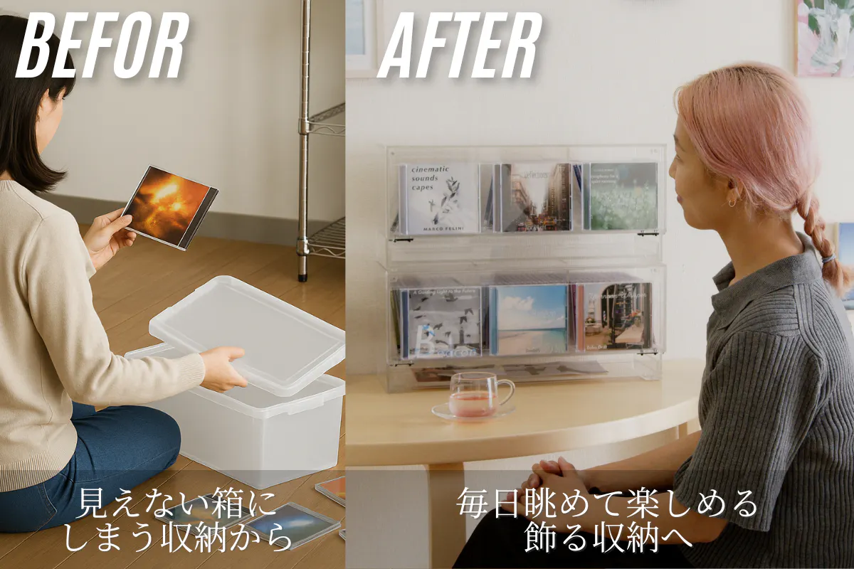 しまう時代から、魅せる時代へ。このコレクションケースは、あなたの音楽の物語を、暮らしの中で輝かせるために生まれました。