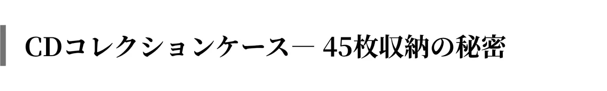 CDコレクションケースを「45枚収納」にしたのには理由があります。一見すると中途半端に思える数字ですが、実はアーティストの歩みを収めるのに“ちょうどいい”サイズなのです。