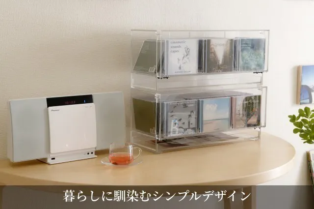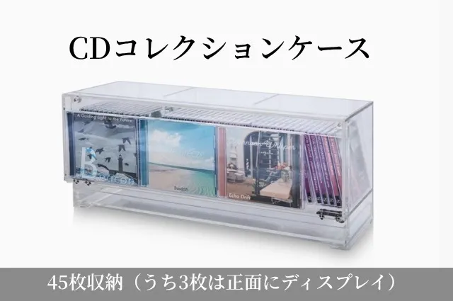 CDジュエルケースを合計45枚収納(うち3枚は正面ディスプレイ)