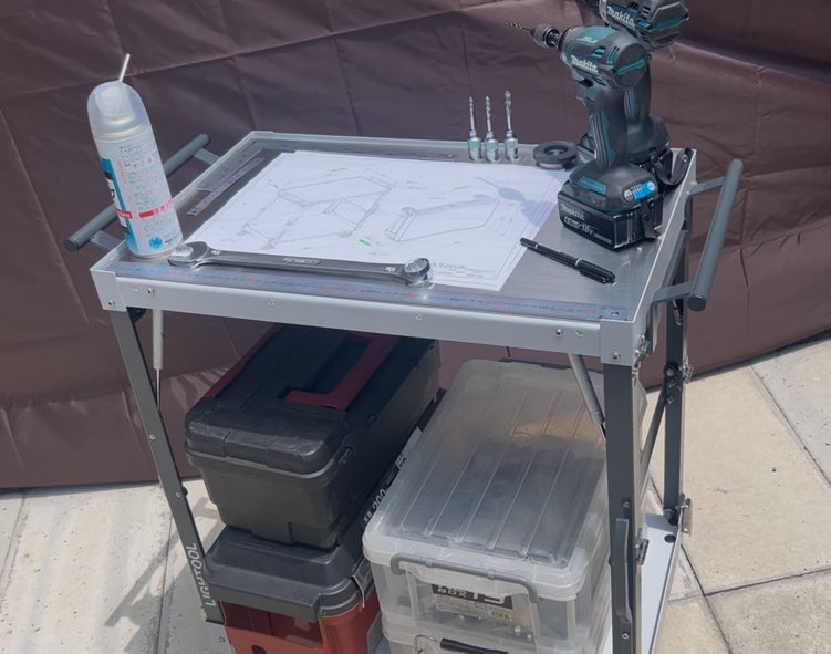 私はこれまで、生産ライン等の機械設計、組立、客先現地施工を行ってきて、客先での打合せや、現場のハードな業務に耐え得る、折りたたみツールカートの必要性を強く感じ、無かったので、このツールカートを作りました。