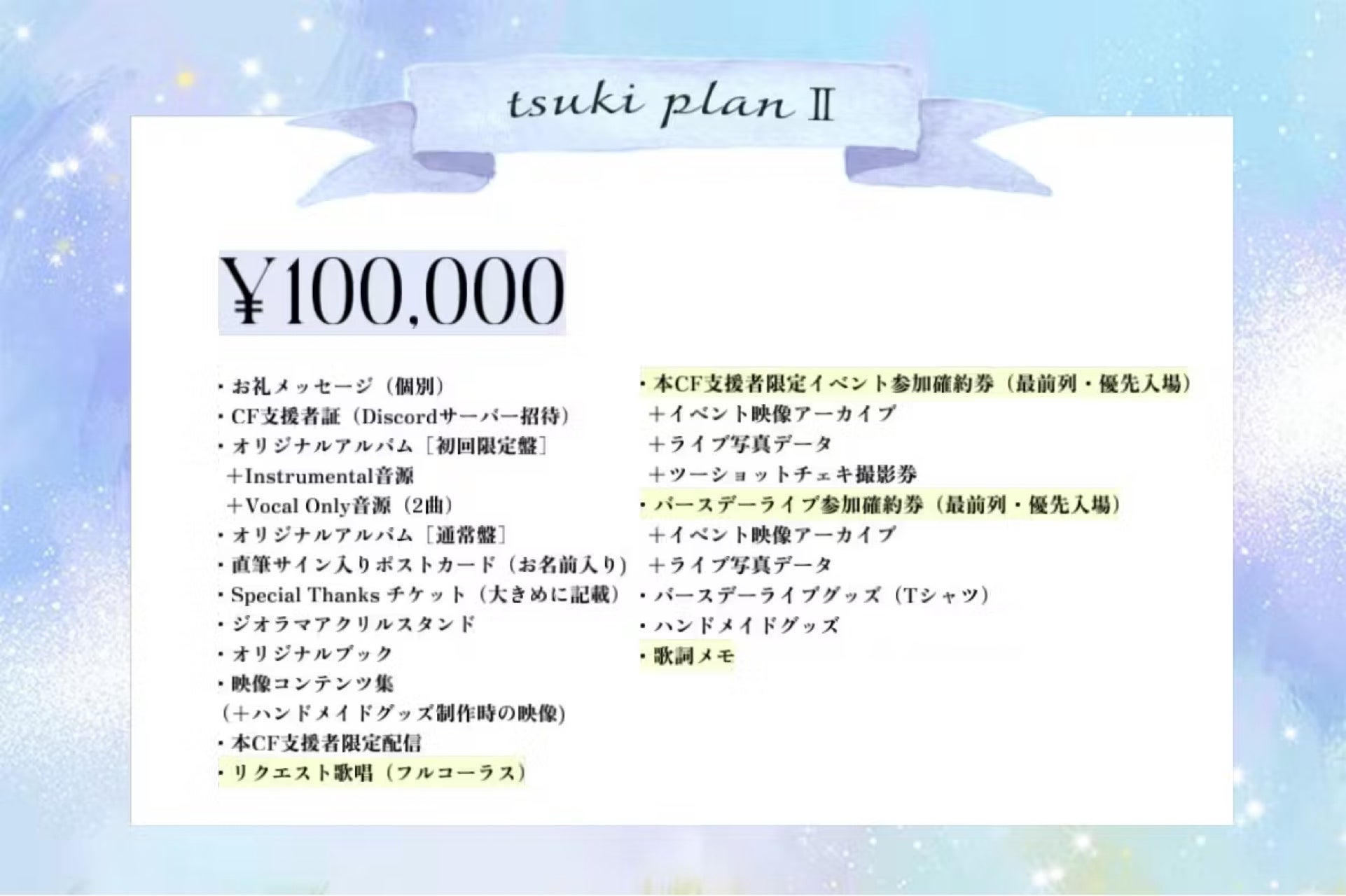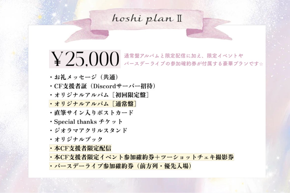In addition, the “Supporter-Only Plan” and the “Requested Vocal Recording (Digital Audio)” are also available for purchase by supporters residing outside Japan.