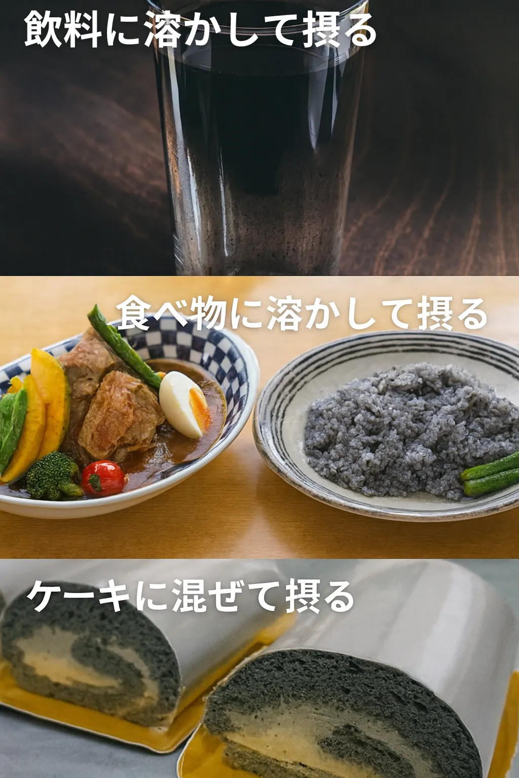 特性の異なる複数の食用炭微粉末をブレンドし、取り扱いやすさと分散性を両立