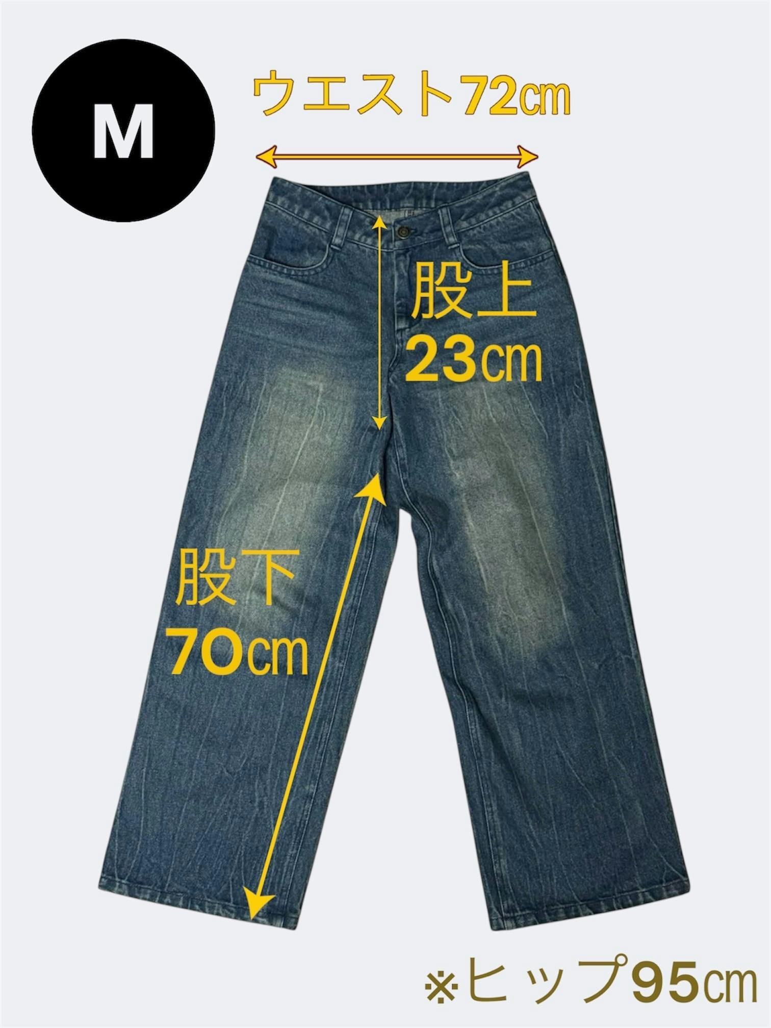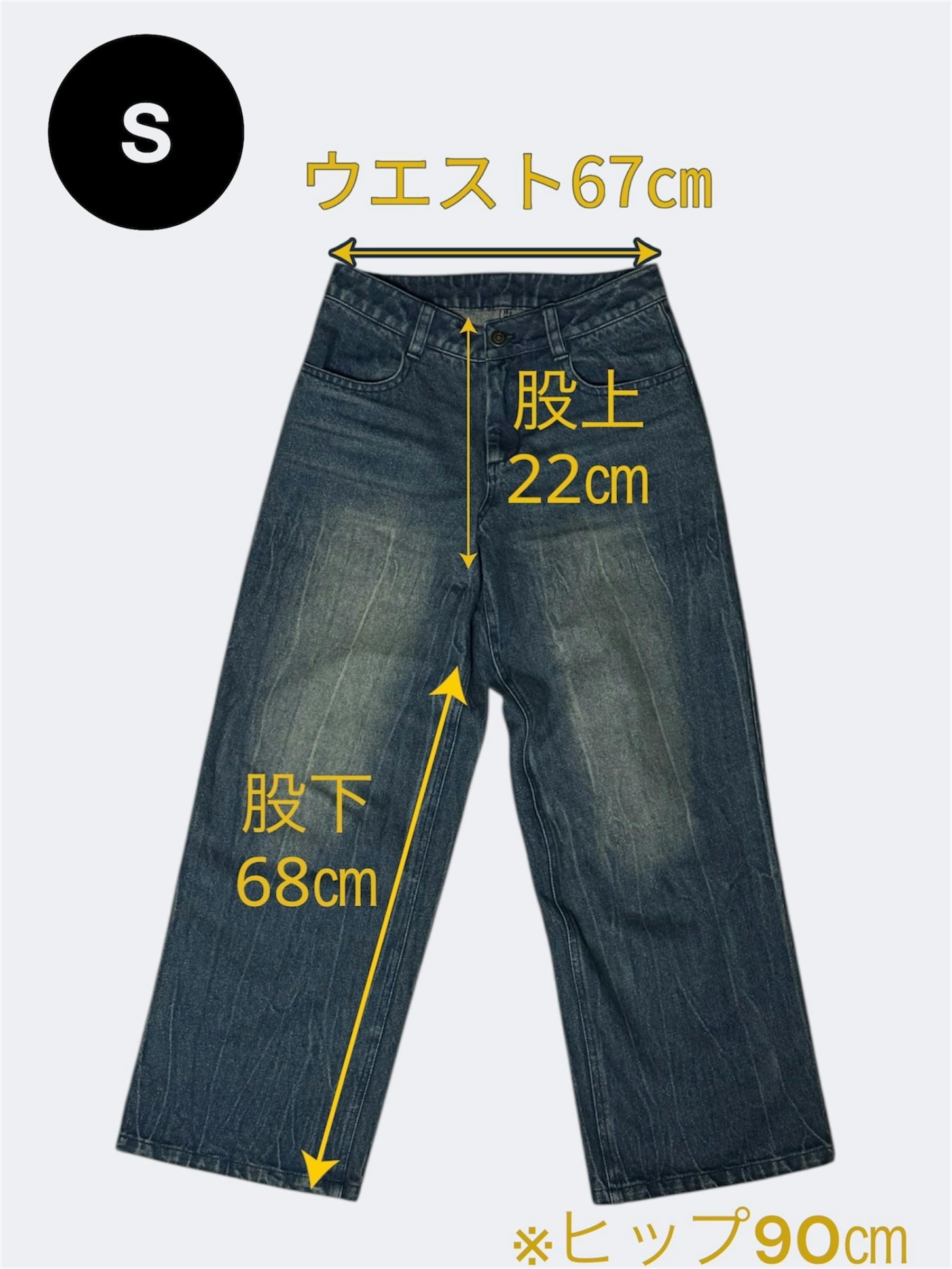 ビンテージ加工を膝上とヒップに施しております。ヒップに加工がある事でスタイルアップ効果があります。全体的に洗い加工(縦の線の加工)を施しており、こなれ感を演出。着用時、立体になるとこの加工が生きます。