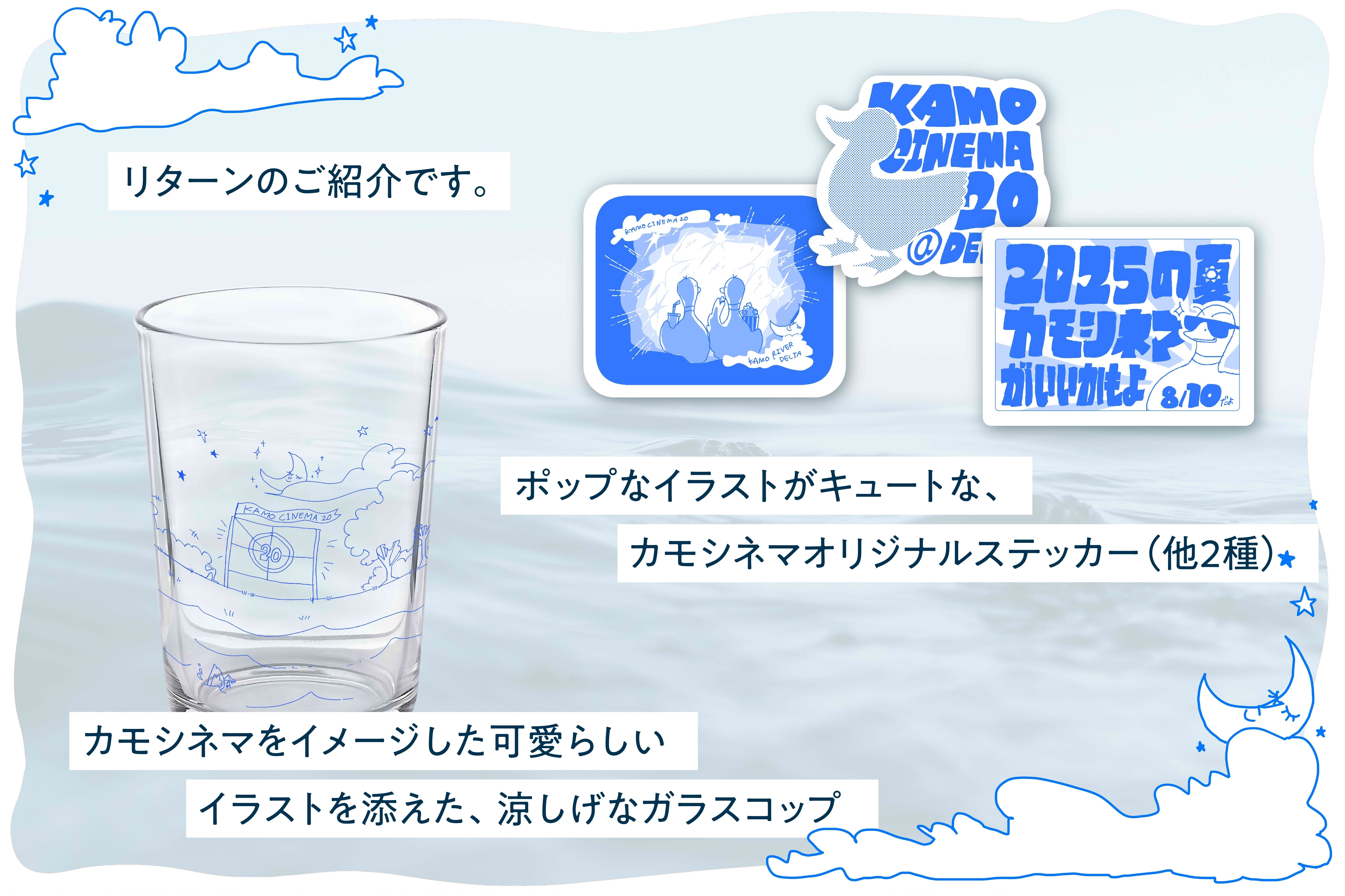 10000円:カモシネマ実行委員会より、お礼のお手紙&カモシネマオリジナルステッカー&カモシネマオリジナルグラス