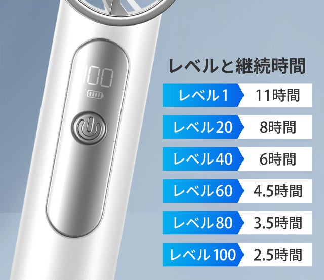 レベル1では柔らかい風が心地よく、レベル100では台風を思わせる強風を体感できます。