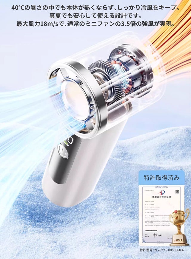 特許技術のICE冷却ホイールを搭載することで、出てくる風の温度を下げます。
