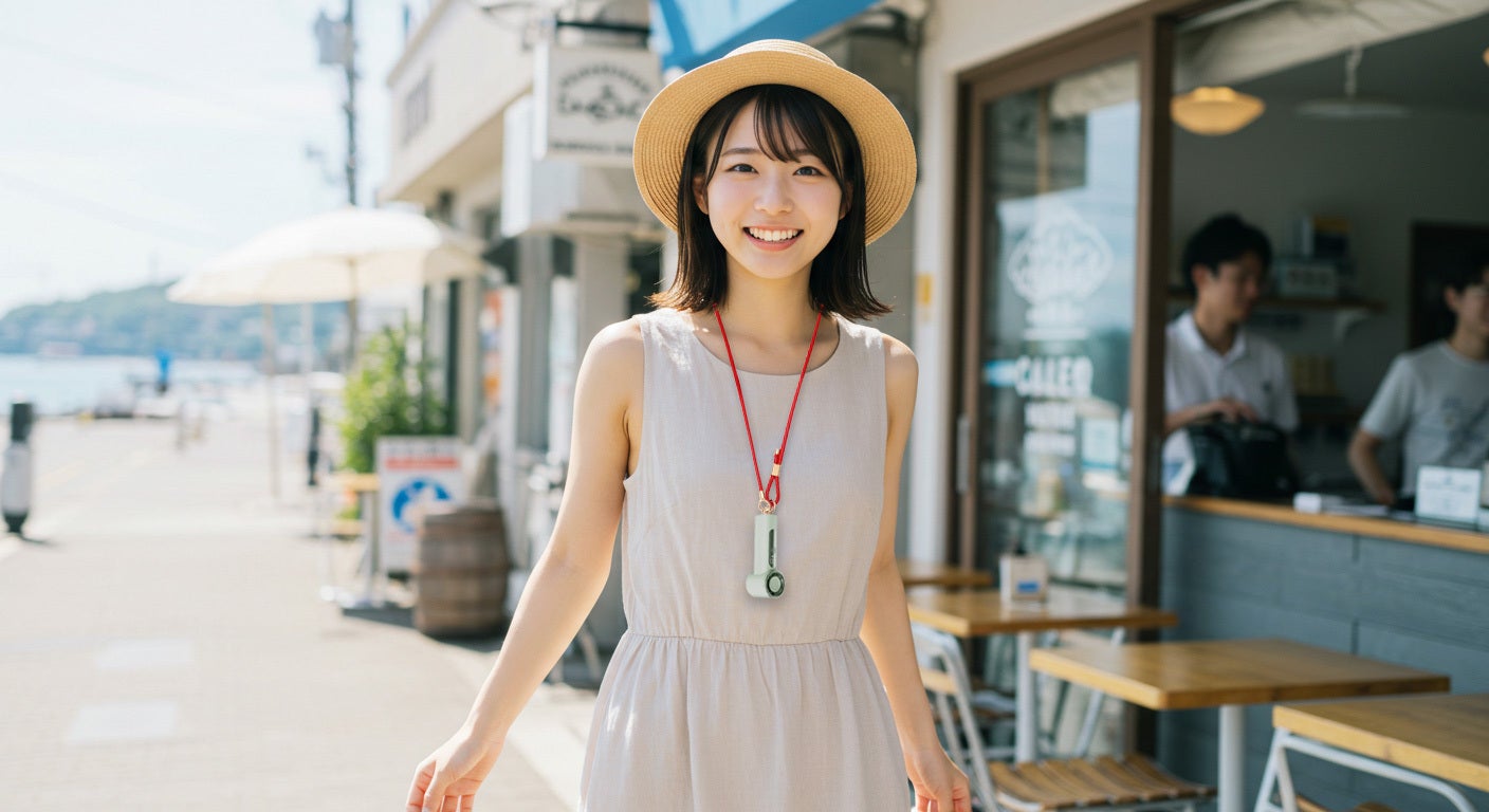 超小型設計だから首からかけても邪魔にならない。重さも軽くて持ち運びに便利です。