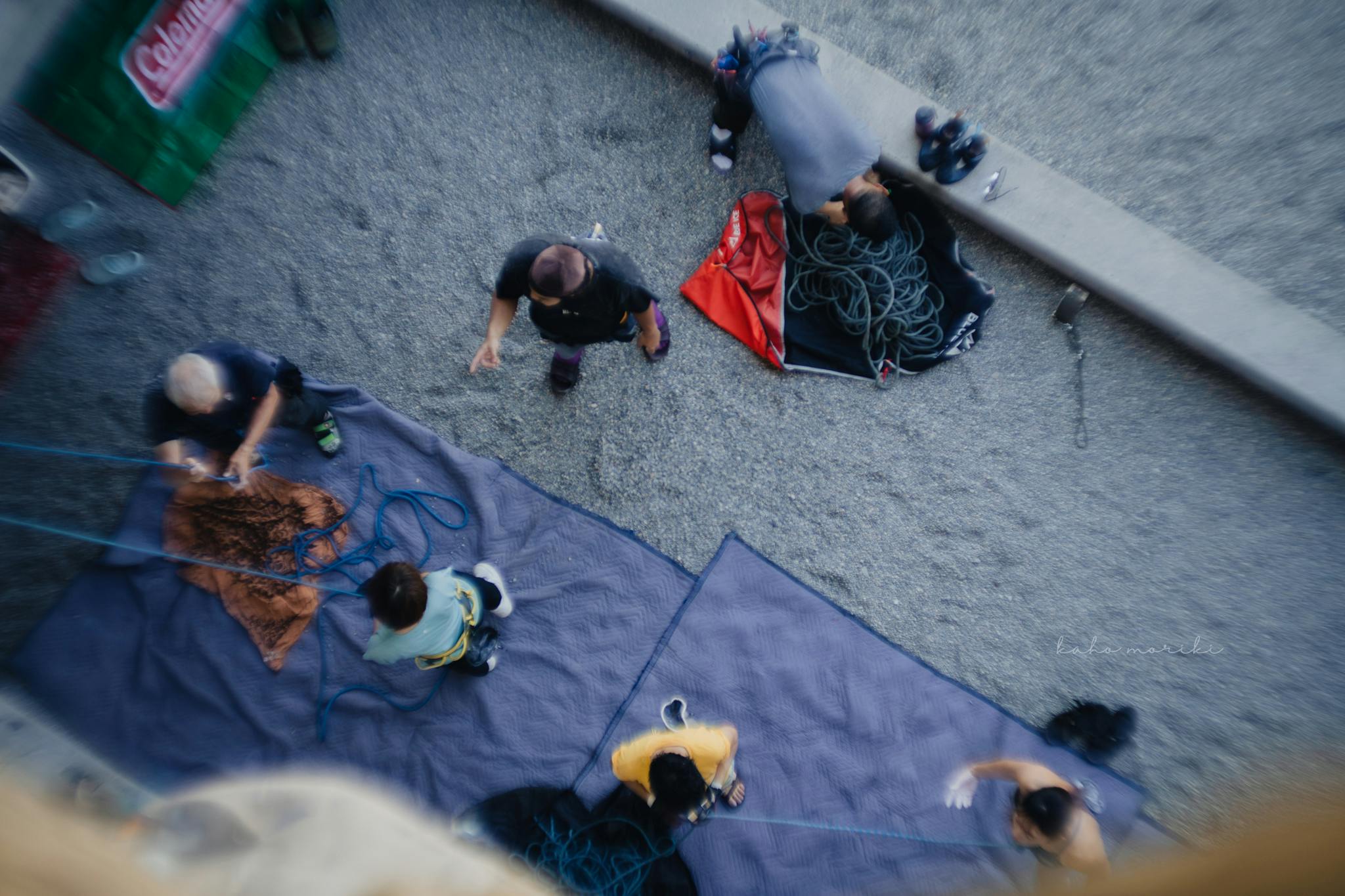 そんなとき、仲間の方が「ハーネスあるよ!」と声をかけてくださり、恐怖心と「撮りたい気持ち」の間で葛藤した末、ハーネスをお借りし、カラビナを手すりに固定していただいて、なんとか上まで登りきることができました。