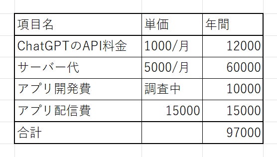 また、私の目標を実現するには、AP料金に加えて、サーバー代、アプリ開発費と配信費...考え出したらキリがありません。