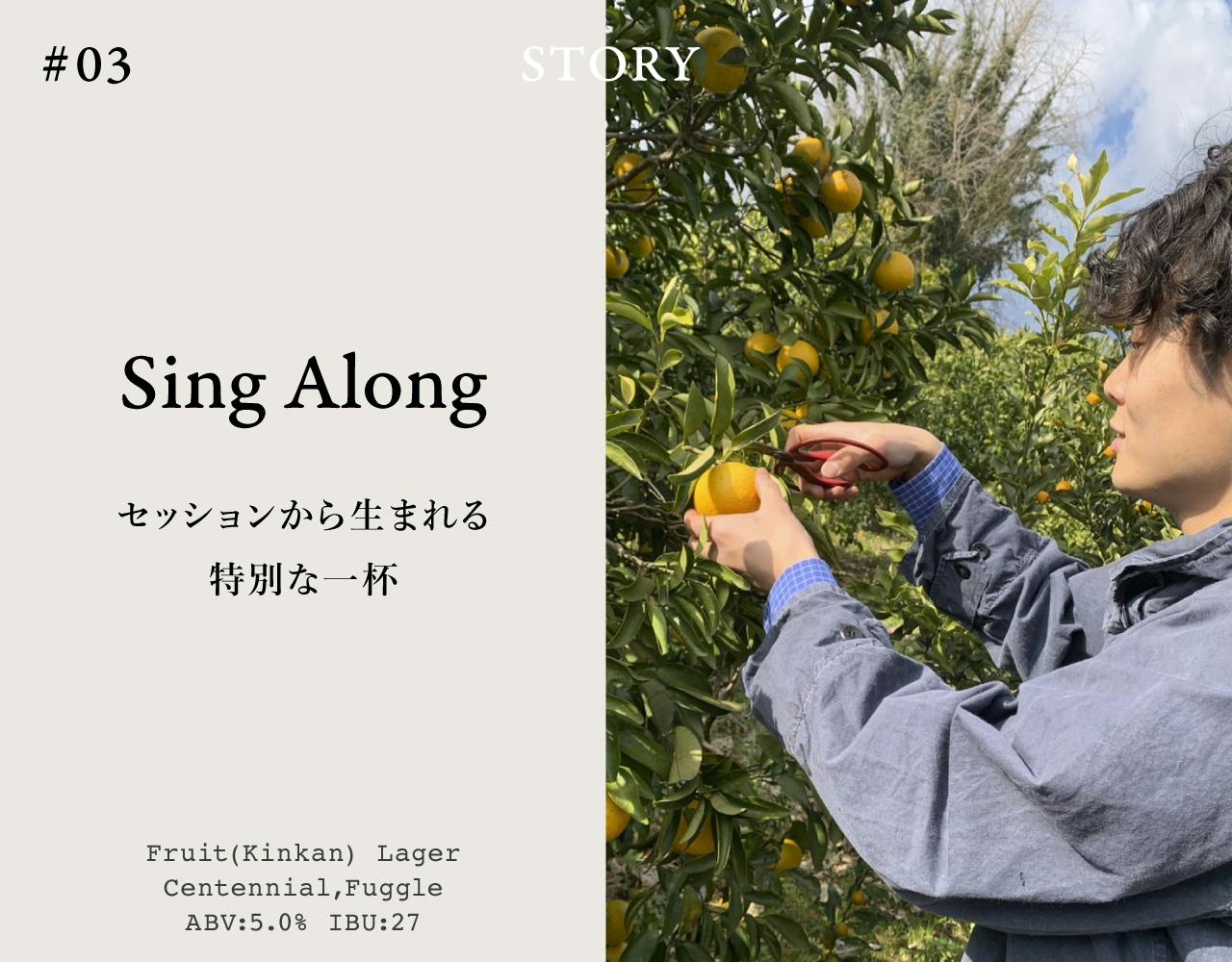 “Sing Along”は、茅ヶ崎産の金柑を使ったビール。この金柑は、創業当初からお世話になっている茅ヶ崎在住のデザイナーさんのご自宅の庭に生えた立派なもので、毎年この金柑を使ったビールを作ることが恒例となっています。今年も一つずつ手摘みにて収穫しました。