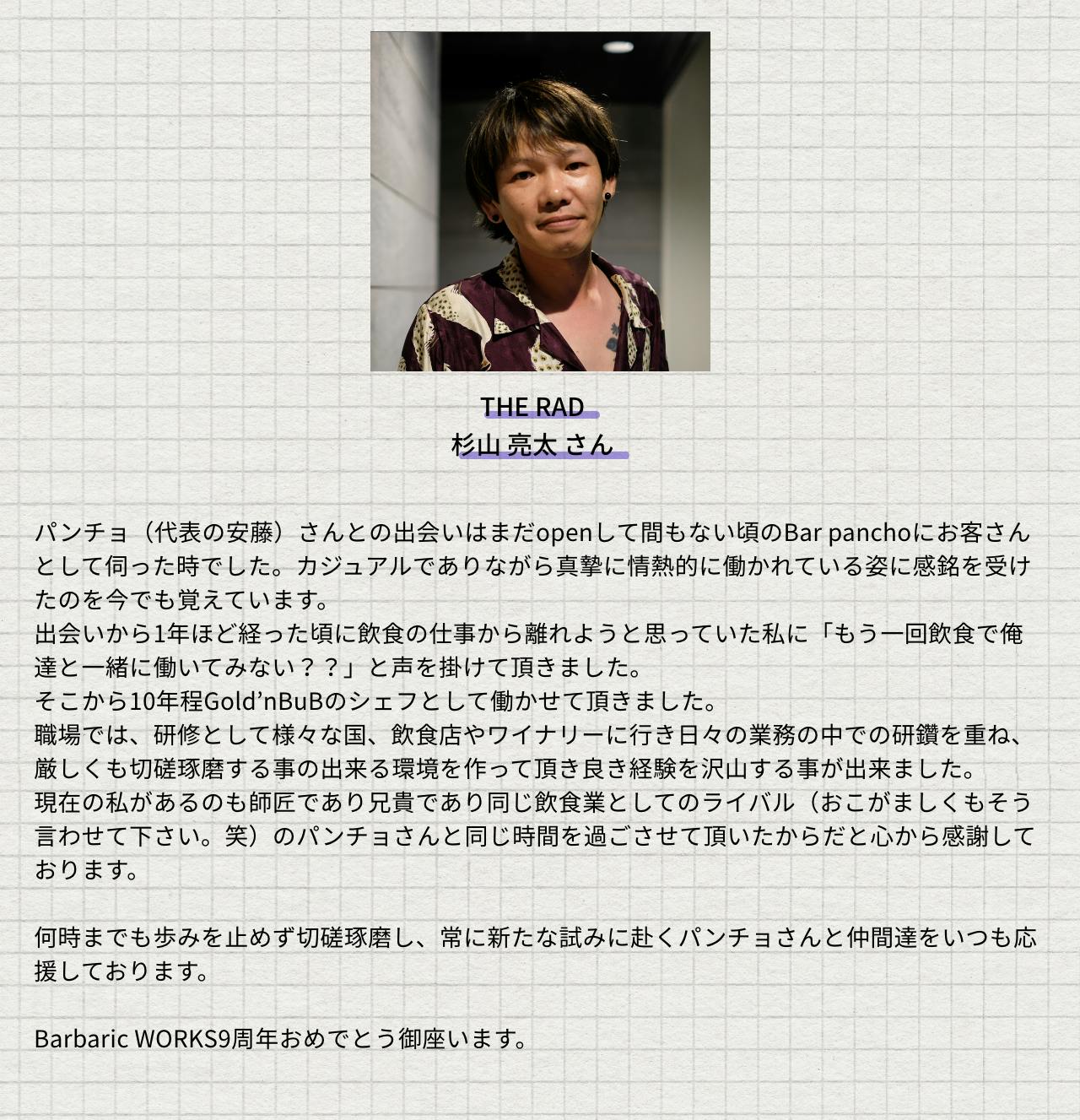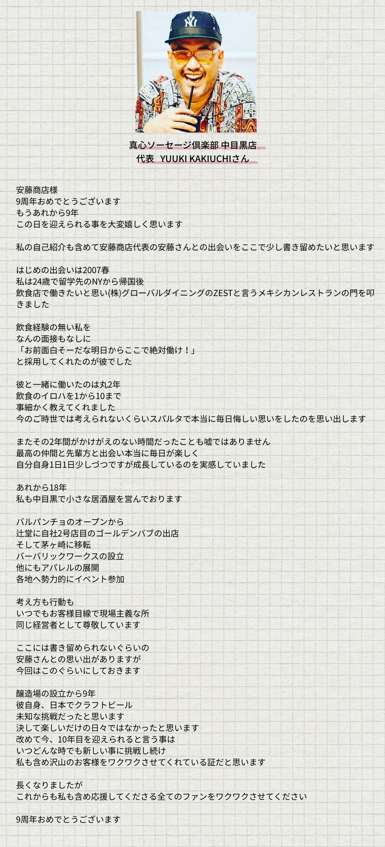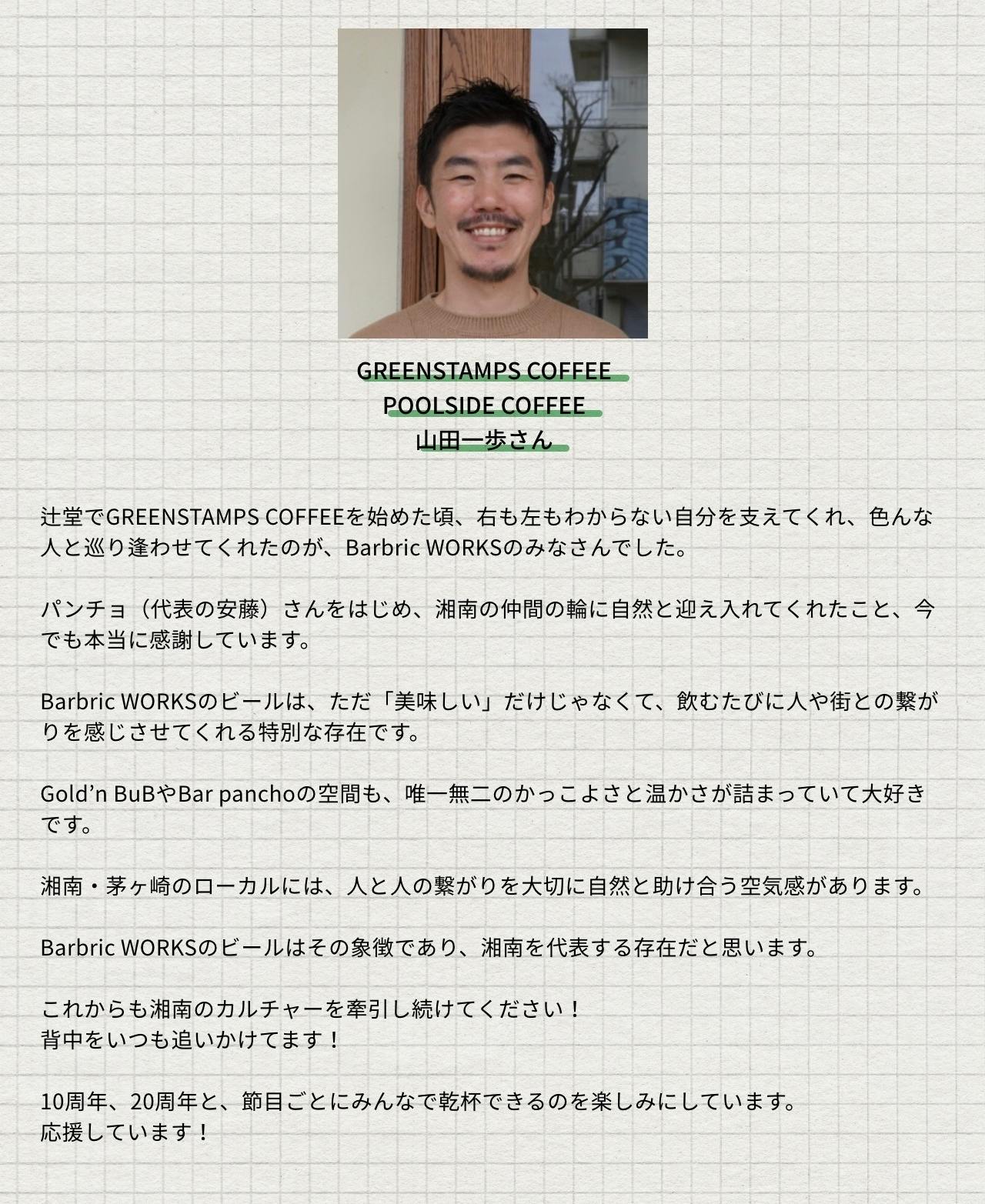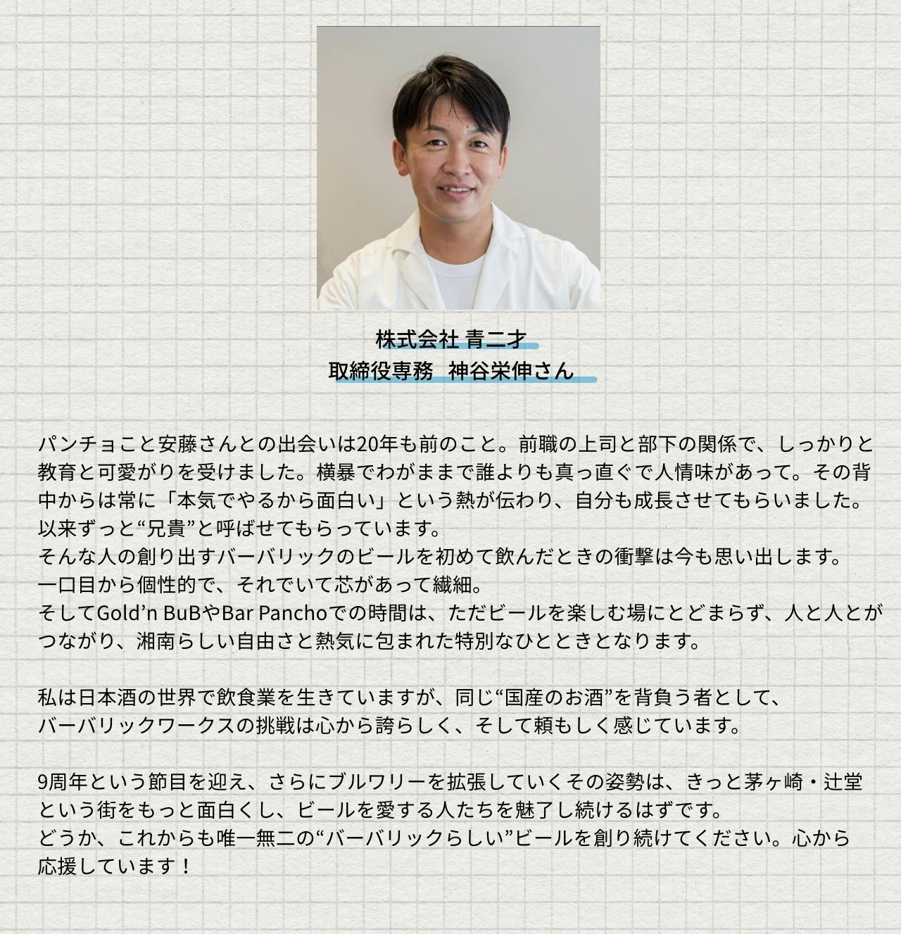 2025/10/31 09:00気づけば、ゴールはもう目の前。9年前、ドラムロールから始まった小さなブルワリーが、今日まで続けてこられたのは――たくさんの応援の言葉、支援のひとつひとつを届けていただいた皆さまのおかげです。支えてくれた常連さん達、遠くから声を届けてくれた仲間達、はじめて出会ってくれた人々。ひとりひとりの応援が重なって、ここまで来られました。最後の1日。どうか一緒に、この物語を締めくくってください。そして、次の10年へと鳴り響く、止むことの無い物語の一歩を共に踏み出しましょう。最後に、9年分の心からの感謝を込めて。Barbaric WORKS / 株式会社安藤商店代 表 安藤佑一醸造長 布施翔太醸 造 吉田 丈 もっと見る