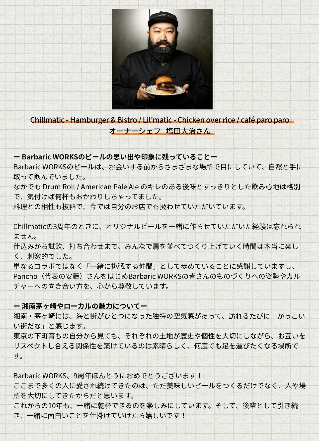 2025年10月16日:Barbaric WORKS、醸造開始から9周年を迎える