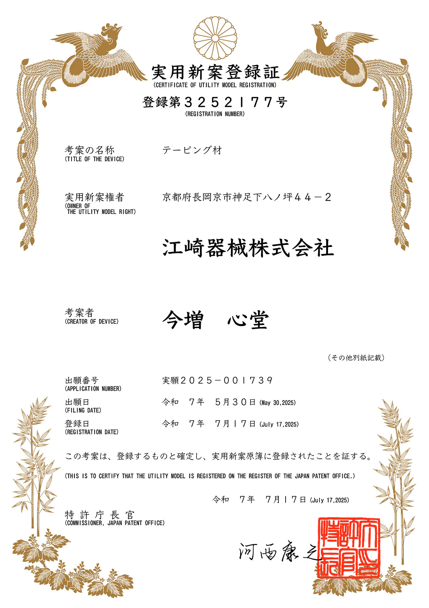 江崎器械株式会社 代表取締役の江崎健太郎と申します。