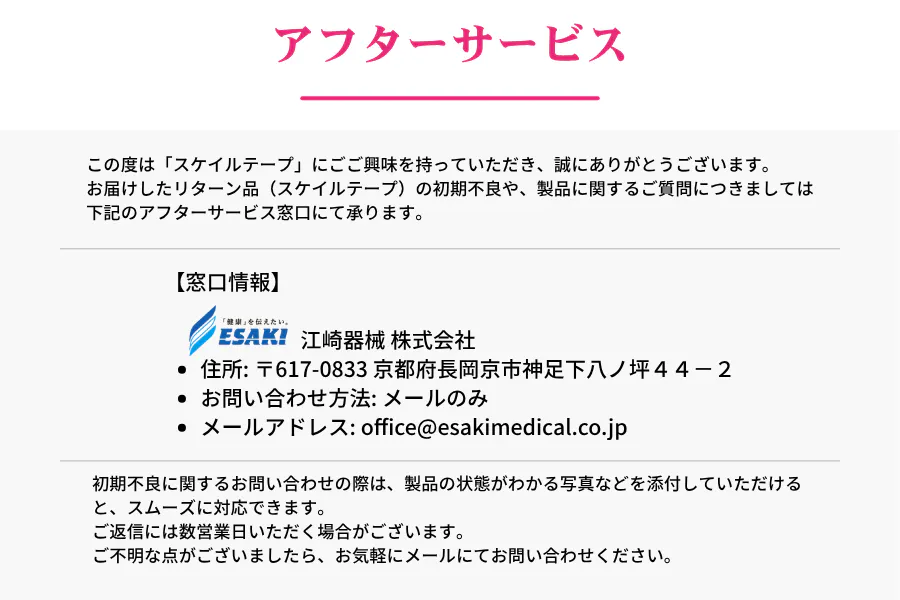 メールアドレス:office@esakimedical.co.jp