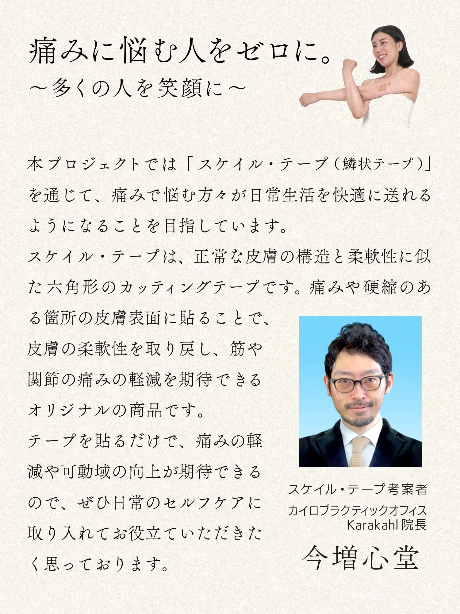 そして、この度ご紹介する「スケイルテープ」の考案者である今増心堂先生です。