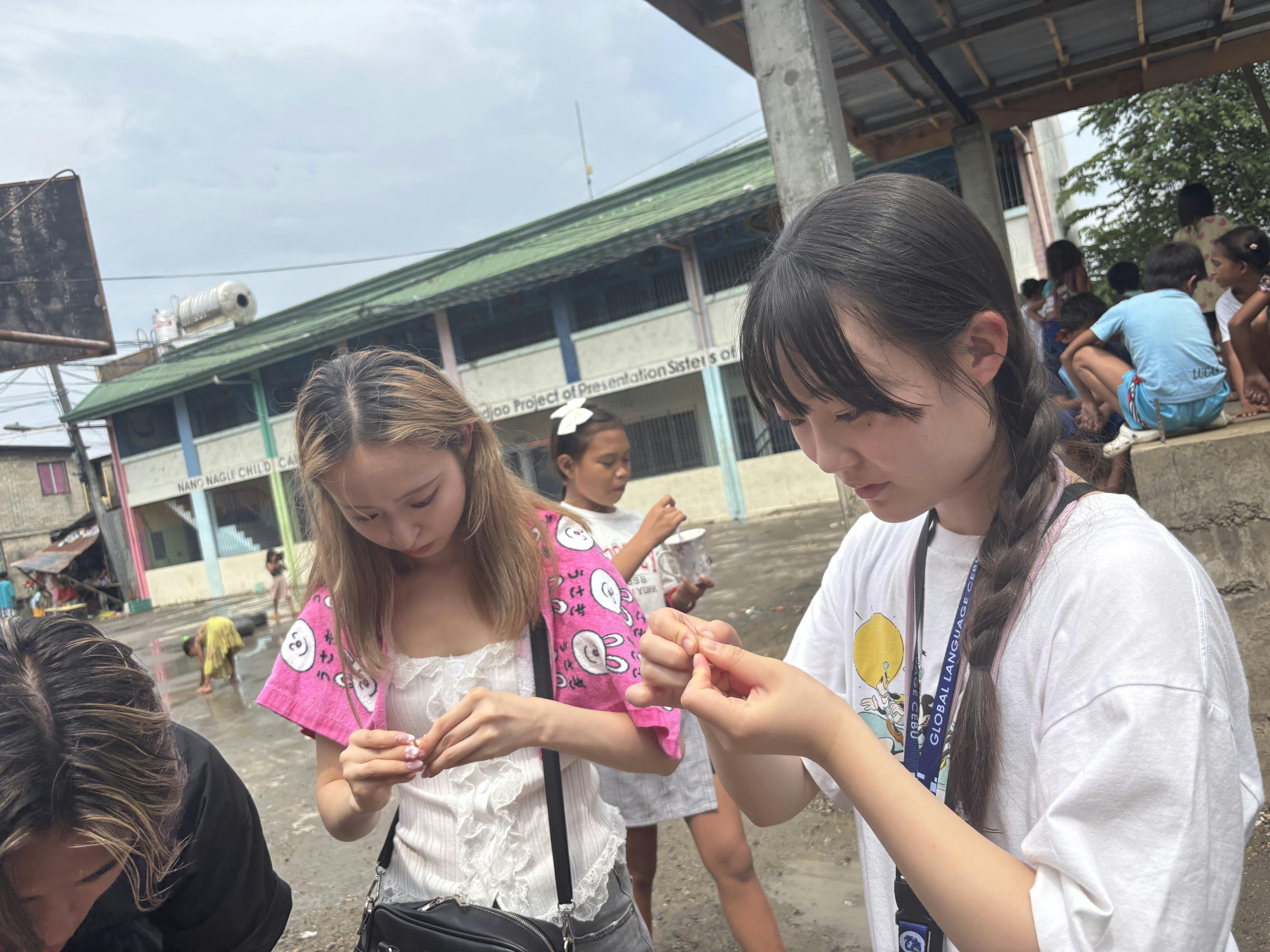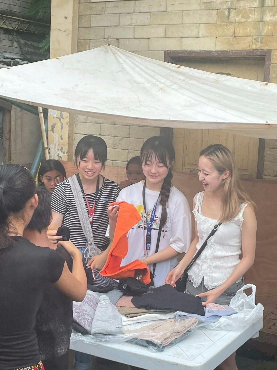 セブ島滞在中はバジャウ村へボランティア訪問もしました。野菜を切ってブンブンチョッパーで細かくしておかゆに混ぜて・・煮込んでいる間に村長さんのお家まで行きました。その後は、皆で持ち寄った古着などを寄付しました。受け取った子供達がもらってすぐに着てくれているのを見て「もっと持ってくればよかった」「私が捨てようとしていた服をこんなに喜んで着てくれるなんて・・」と帰り道はたくさんの想いを学生さんから聞きました。