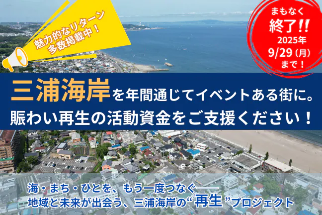 それは「三浦海岸が好き」「応援したい」と思う一人ひとりが、未来へ向けて手を差し伸べるチャンスです。