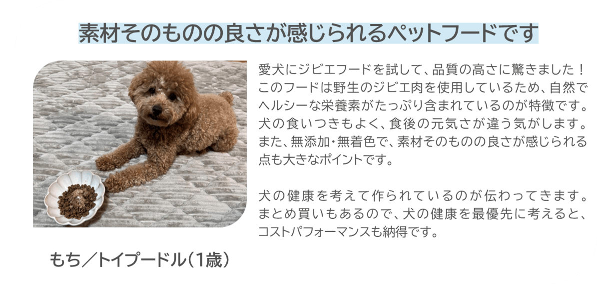販売元の株式会社湖光ファインは【人とくらしと社会に快適を。すべての「くらし」に心地よさを。】ということを大切にして宅配水事業を行っている会社ですが、「家族の一員であるペットにも心地よい暮らしを届けたい」という想いから、ペットフードの商品開発に至りました。