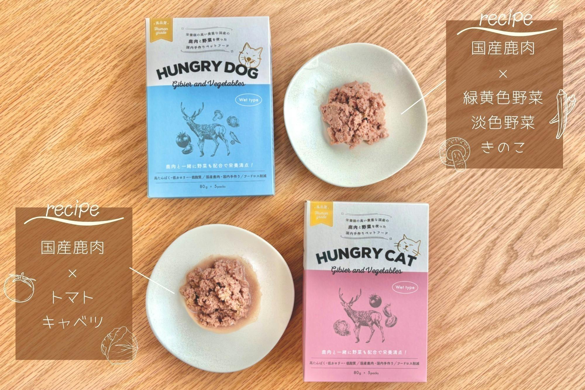 今回ご用意するのは、「HUNGRY DOG」「HUNGRY CAT」の1箱~5箱セットです。