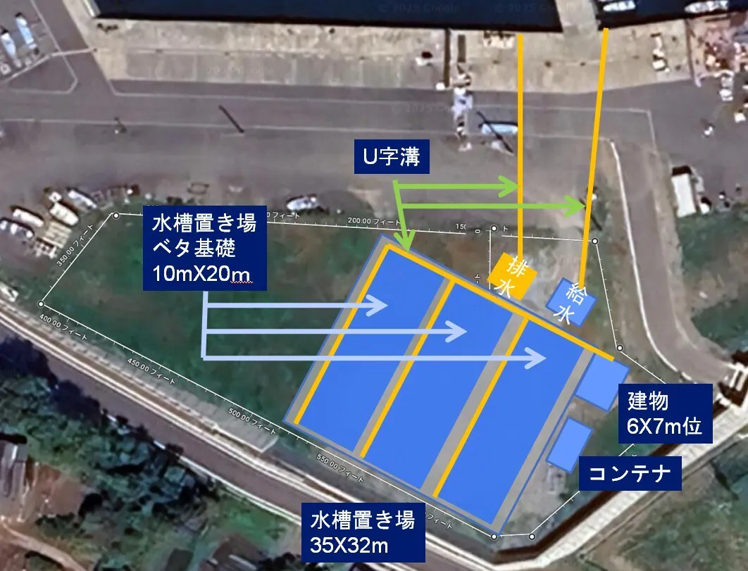 ・陸上の養殖施設(水槽)に移し、環境を整えながら育成を開始
