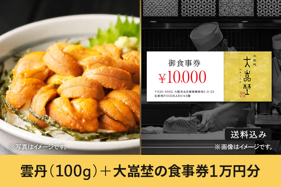 【雲丹(100g)と大嵓埜(おおくらの)の食事券1万円分】