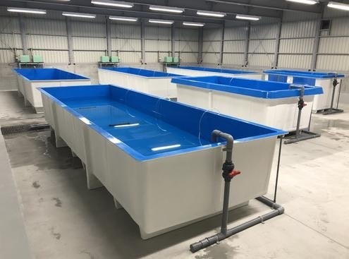 ・陸上の養殖施設(水槽)に移し、環境を整えながら育成を開始
