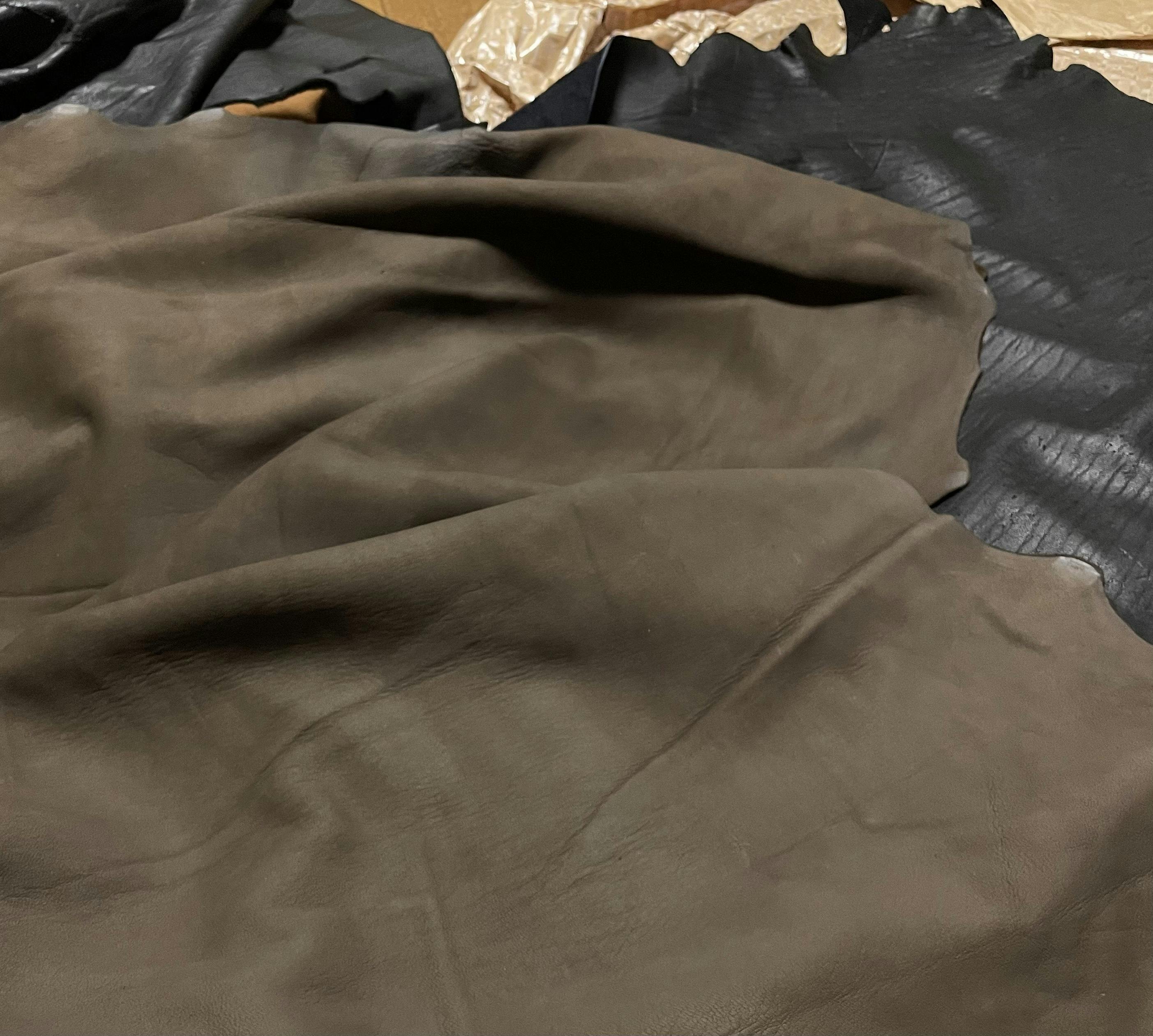 さらに、鹿革は一枚一枚すべて表情が異なります。シワやたるみ、キズ、血管、毛穴など、その個体が生きてきた痕跡が革にそのまま現れます。工業製品のような均一さはありませんが、だからこそ一つひとつに個性があり、皆様のお手元に届くバッグは世界に一つだけの表情を持つ一点ものになります。