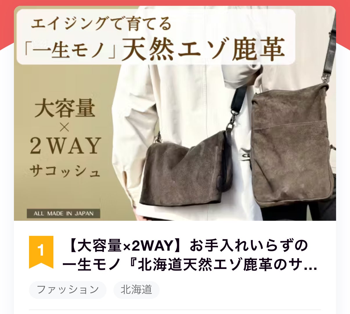 「北海道天然エゾ鹿革サコッシュ」は、試作を繰り返して作り上げた自信のバッグです。