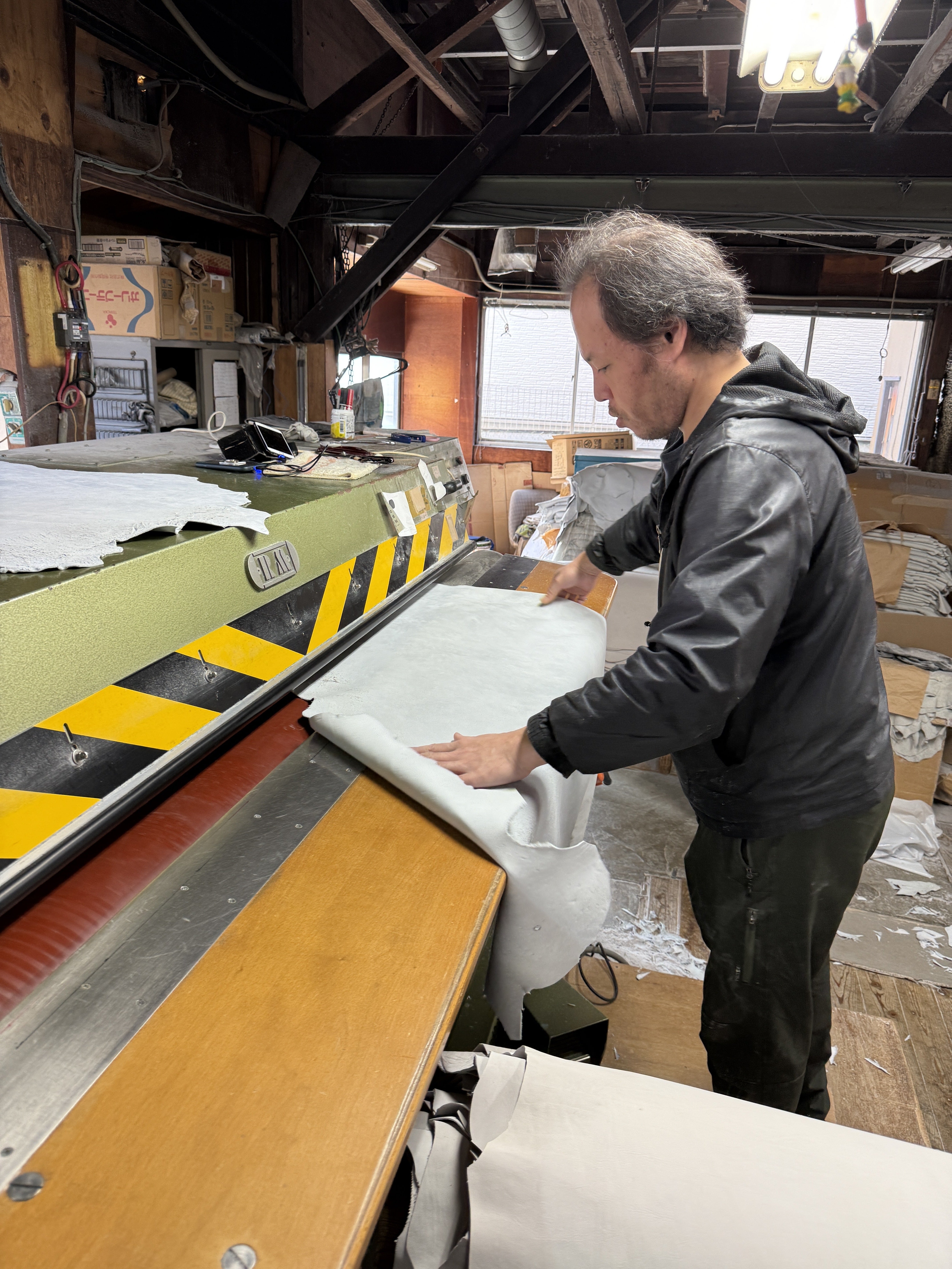 鹿革はそのまま縫製工場に運ばれ、技術の高い日本の職人の手で1点ずつ製品化します。軽くて柔らかく強靭なクオリティのエゾ鹿革を作るためには、この鮮度が大事なのです!