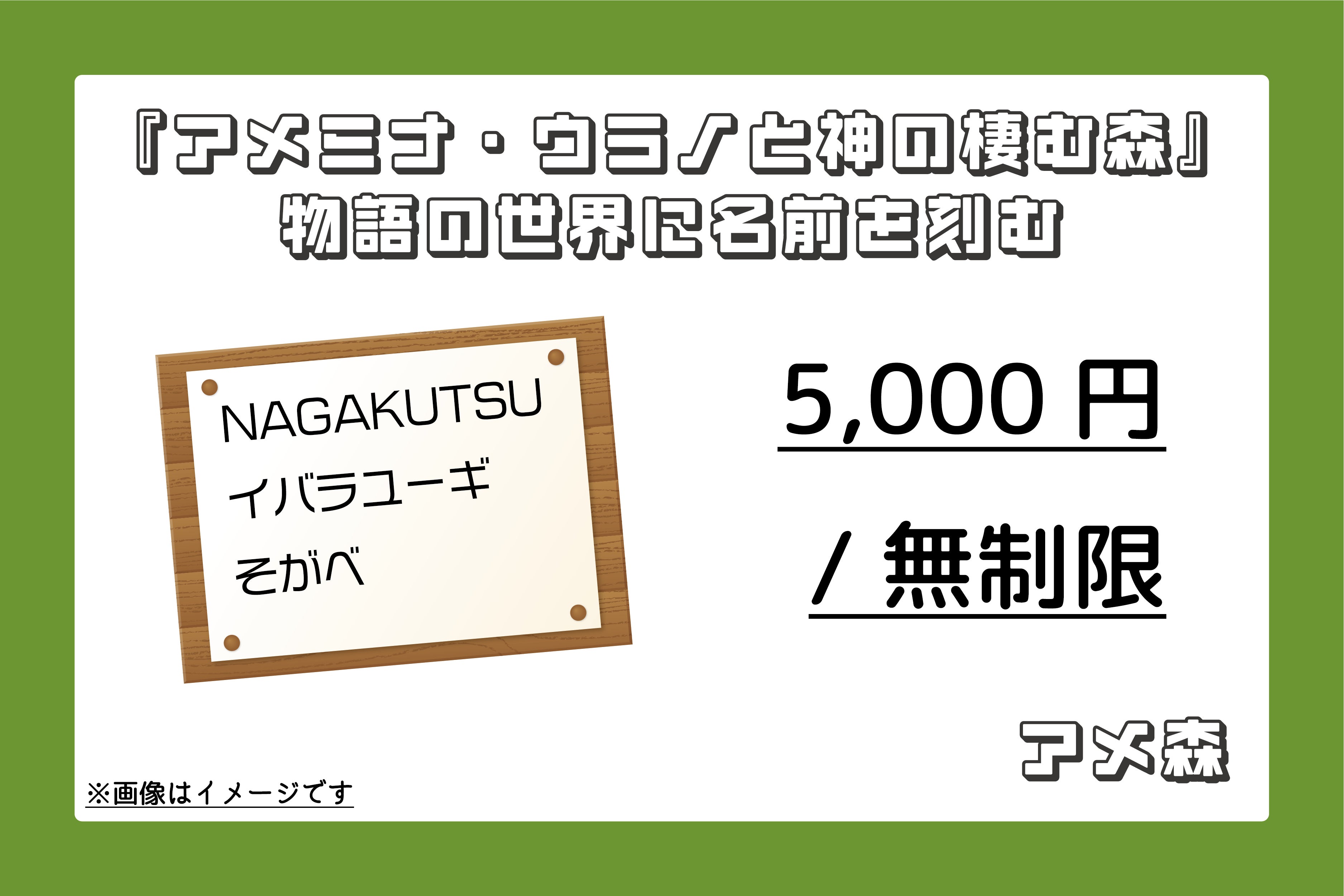 ◆『アメミナ・ウラノと神の棲む森』物語の世界に名前を刻む:5,000円/無制限