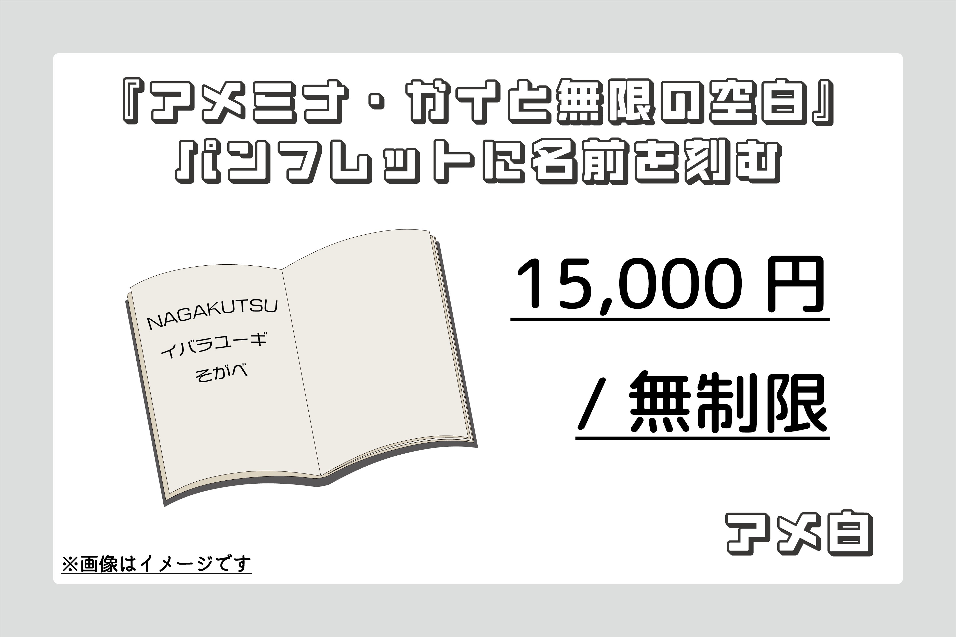 ◇『アメミナ・ガイと無限の空白』パンフレットに名前を刻む:15,000円/無制限