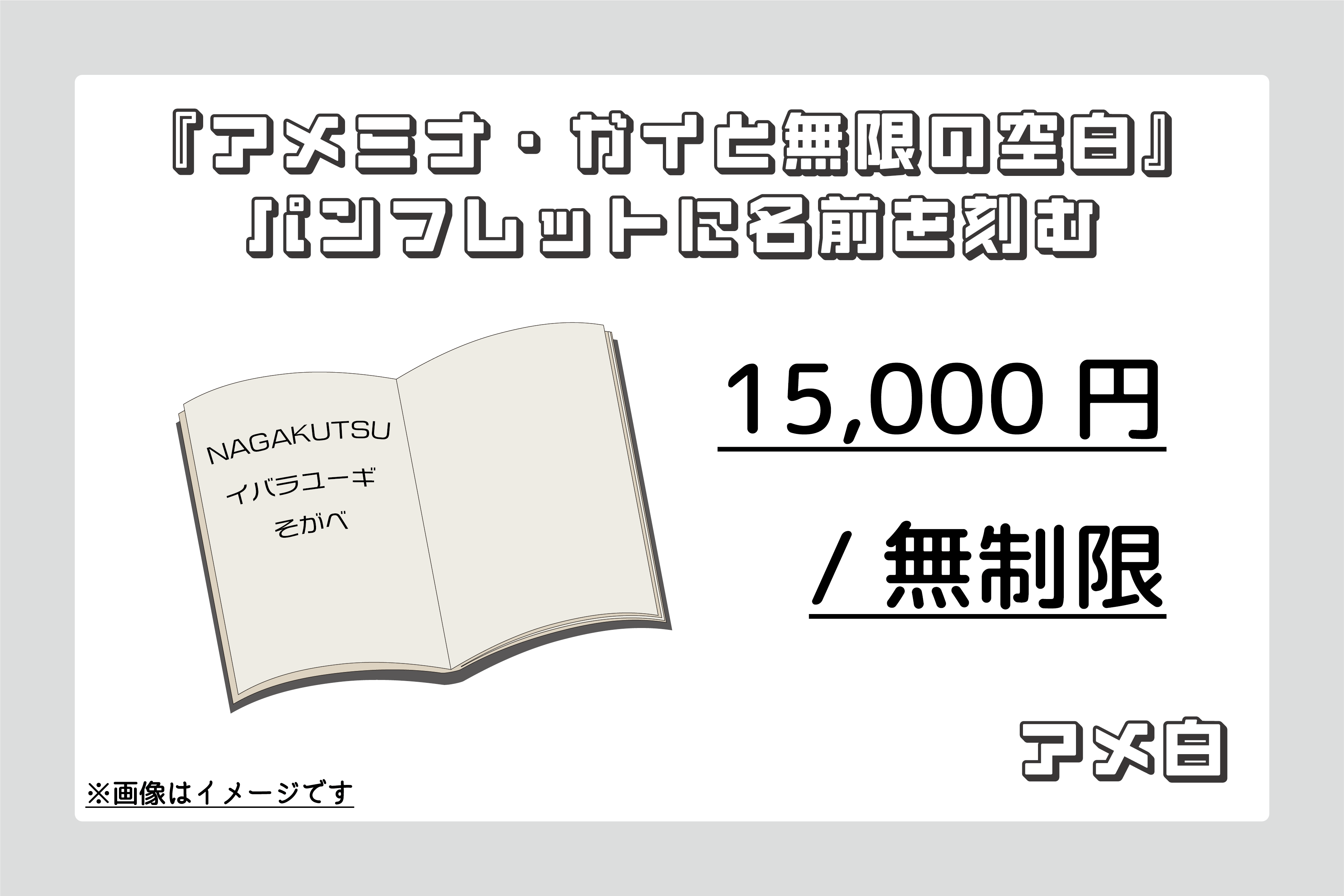 ◇『アメミナ・ガイと無限の空白』パンフレットに名前を刻む:15,000円/無制限