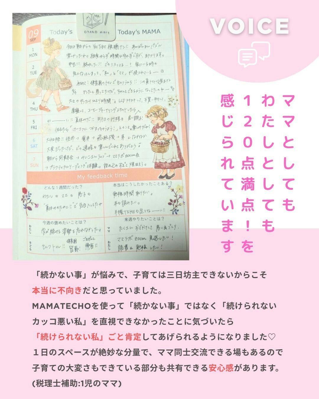 使用者様からも、【子育てが楽しくなった!】【手帳を書くという自分の時間をつくることで子どもにイライラする時間が減った!】などのお声をたくさんいただきました。