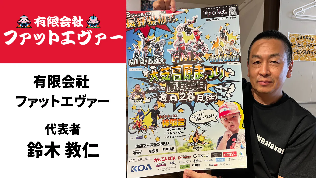 今年度もFMXプレイヤー達を呼ぶことはもちろん、MTB/BMXやスケボーのパフォーマンスを『南箕輪村 大芝高原まつり』で見てもらうことが、未来の活動につながると確信しています。