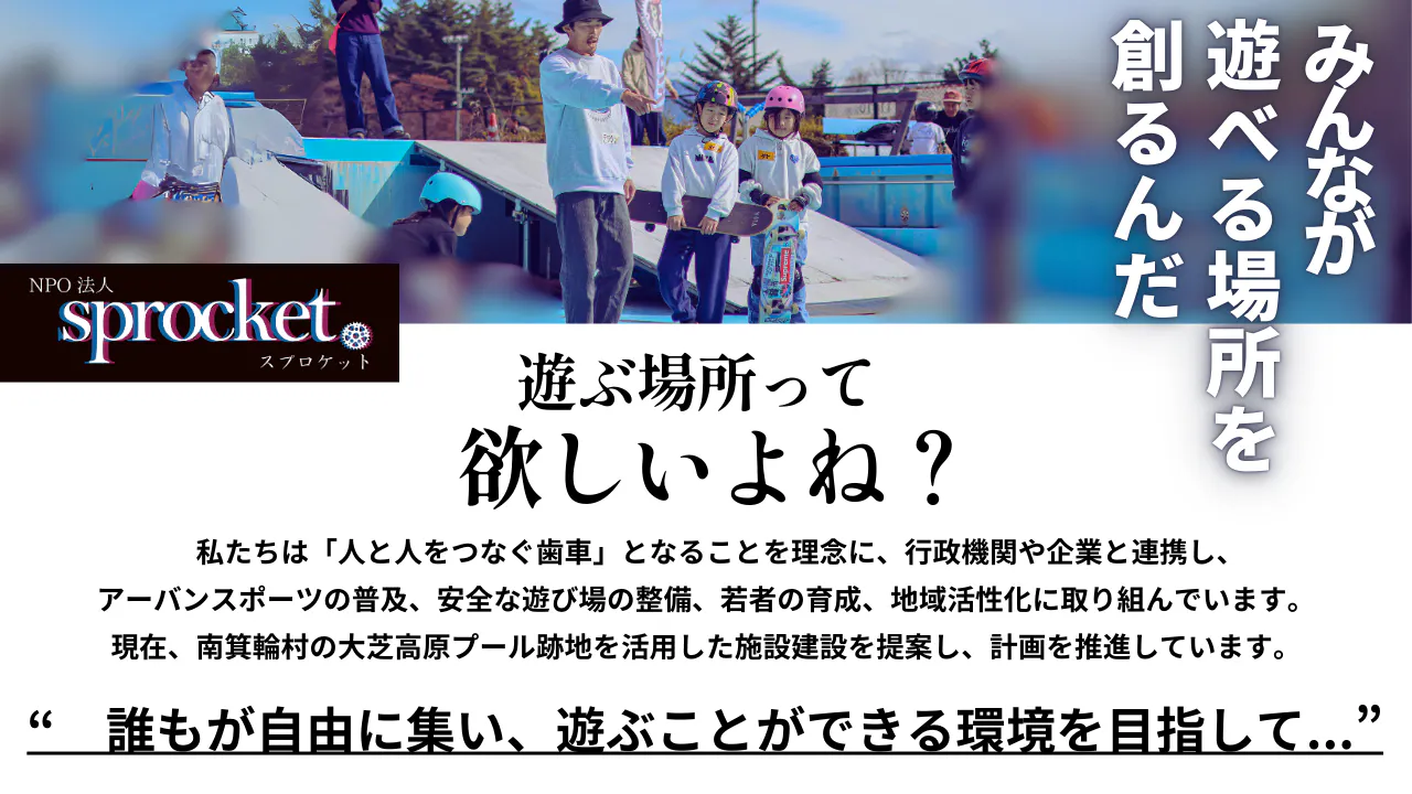 NPO法人スプロケットはみんなが望む『遊ぶ場所って欲しいよね?』を合言葉に、