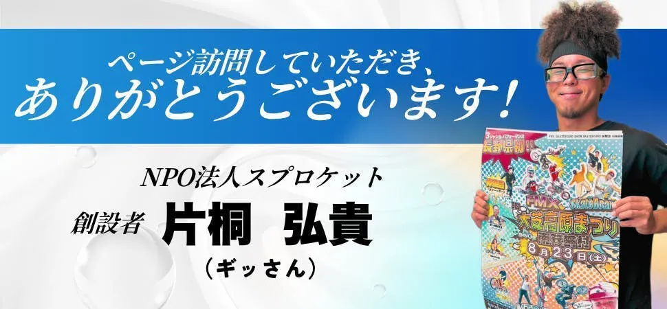 それがFMXプレイヤーとして忘れかけた夢の続きとして、次の世代へ渡してあげたいという、NPO法人スプロケット代表片桐弘貴の新たな挑戦になりました。