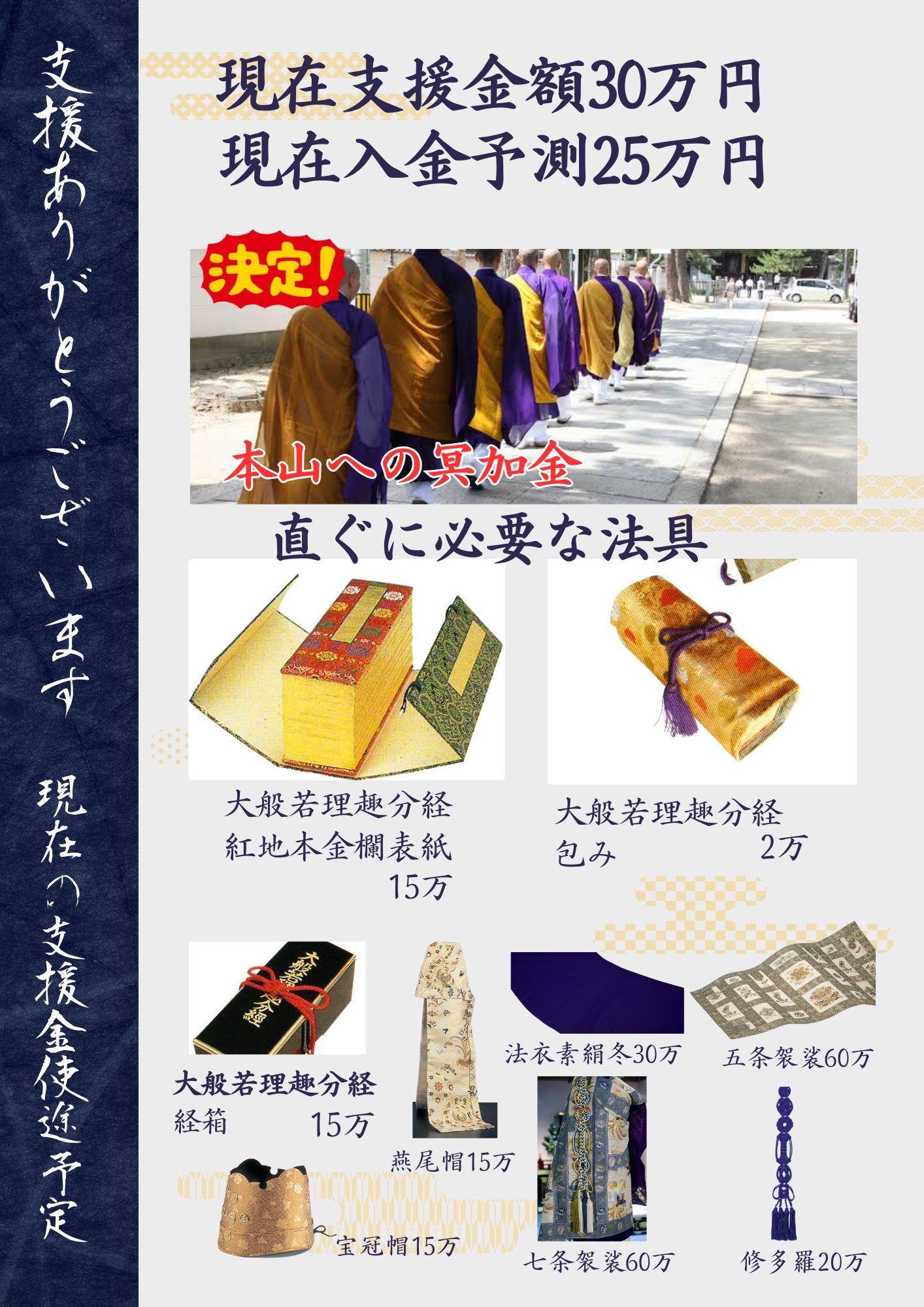 皆様からのご支援は、私の本山修行費用となり、この先の活動の大きな力となります。この本山修行費用があるからこそ、私たちは前へ進めます。