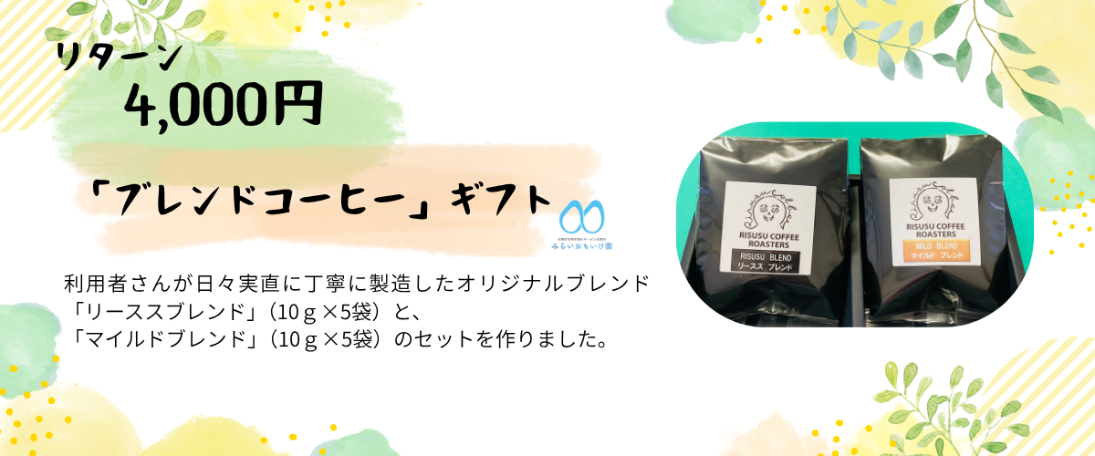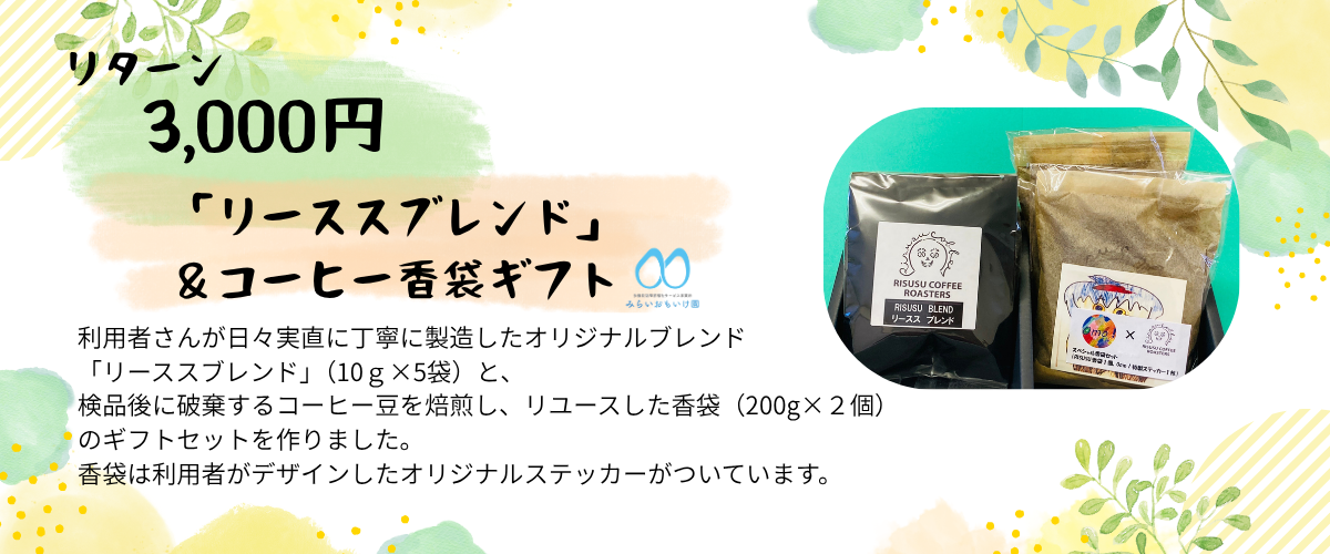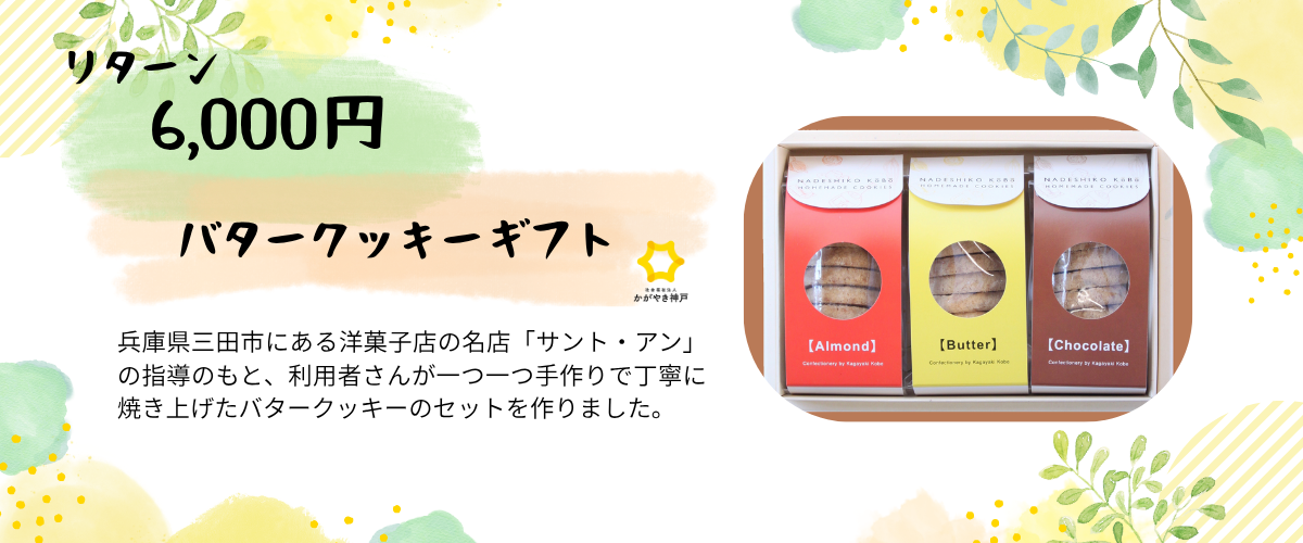 リターン品は兵庫県内の就労継続支援B型の「認定NPO法人ぱれっと」・「社会福祉法人かがやき神戸」・「社会福祉法人みらいおもいけ園」の3事業所に通っている障がいを持った方が、丁寧に作った品物をご用意しました。