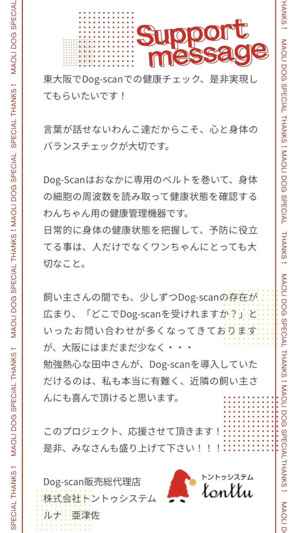YouTubeはこちら➡ドッグスキャン導入クラウドファンディング